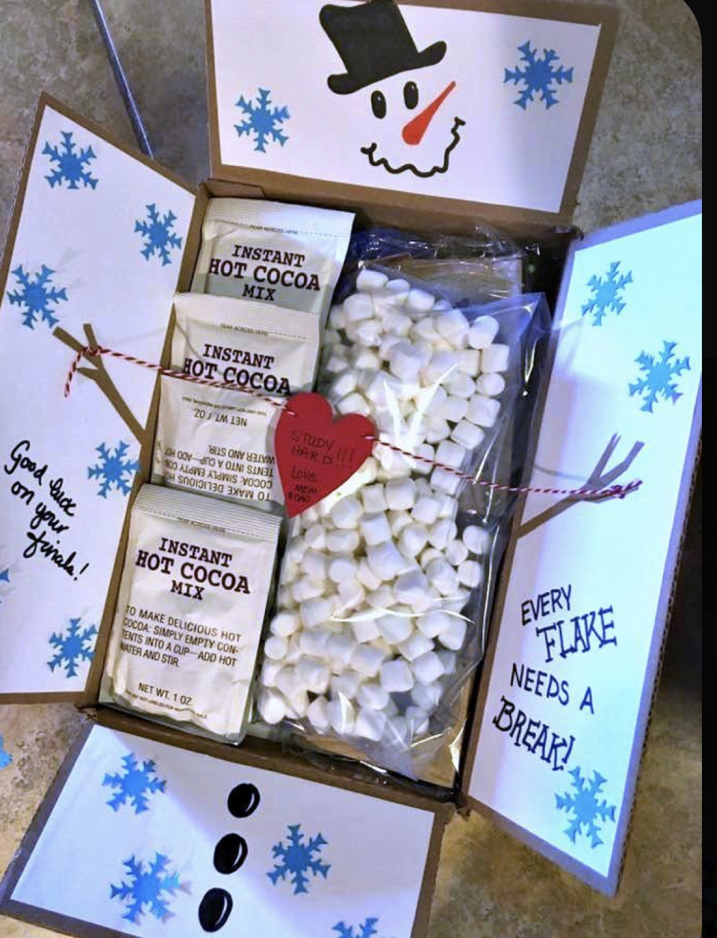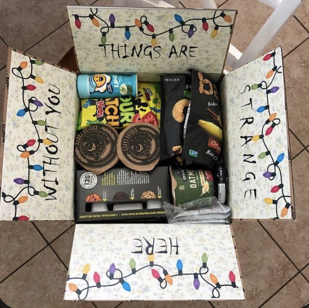 - Snacks, including chips, salsa, nuts, cookies, beef jerky, non-melting candy and trail mix in packaging that isn’t easily crushed. Drink mixes in single-serving packets are also a good addition.