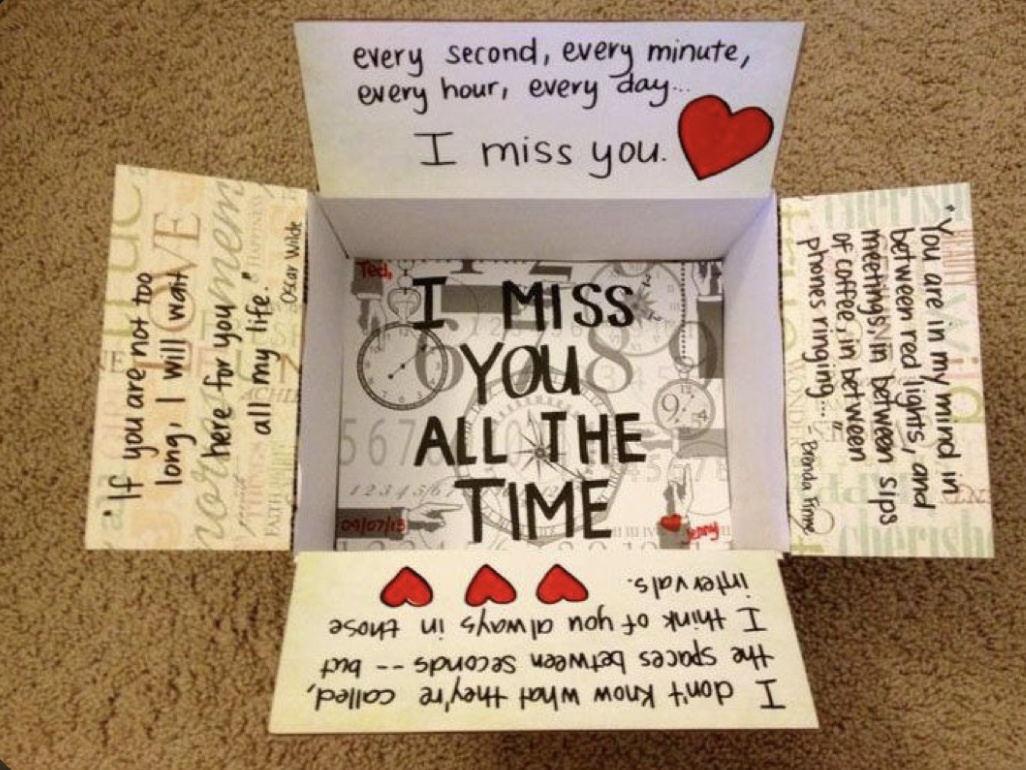 - Photos and notes that show your support and affection. Maybe get a daily tear-off calendar and write an encouraging note on each page.
